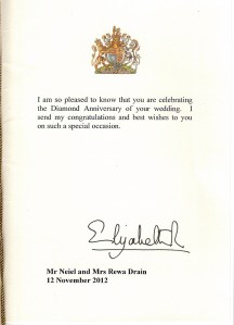 It’s a scam! The whole year “I’ll be 50 next birthday” or “50 next year”. Hell, whatever happened to being in my forties! That ended on turning 49 I’ve realised. Wished I knew that then, but then again I guess I entered my forties a year early too. My Tim turned 20 this month, Dad turned 80 and my parents were married today 60 years ago. A card signed by Elizabeth R, another from the GG, one from the PM, one from the Minister of Internal Affairs (something not right about those words being involved in celebrating an honest and enduring relationship!) and finally Mum and Dad’s local MP. So a collection of cards, good wishes on Facebook and no doubt elsewhere and they will awake tomorrow in their 61st year of marriage, almost as irritatingly healthy as they’ve been for as long as I’ve known them! Which is 49, well nearly 50, years, give or take a few years of not really knowing what’s going on.