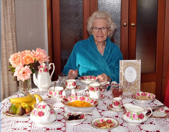 Dad put on a special breakfast and when I saw the picture on Facebook this morning, with blurry morning eyes I assumed it was a shot of the Queen, and then I realised of course it was. Just our family’s! I did feel a bit sad I wasn’t there, as I usually see Mum on her birthday, but there’s a lot more pain going on that this of course. But after singing her Happy Birthday, she didn’t muck around with the niceties: “Have you got yourself ready to go into work?” Now I remember why I wasn’t late for school! Wisdom brings with it refreshing practicalities I find with Mum.
